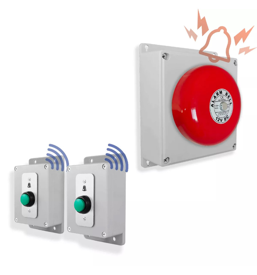 Wireless Warehouse & Industrial Doorbell Kit – 800m Range, Plug-In Bell with 2 Heavy Duty Push Buttons (PROTECT 800)