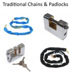 10 mm Case Hardened 5 metres long Steel Chain Kit (with welded Links) inside a protective sleeving and supplied with a H/D Double Slotted Shackle Padlock & large Flush Mounting Steel Anchor.