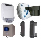 Battery Powered External Wireless Alarm supplied with 2 x External PIR's & a Remote Control, popular for protecting Gardens, Farms & Yards (No Power Required). .